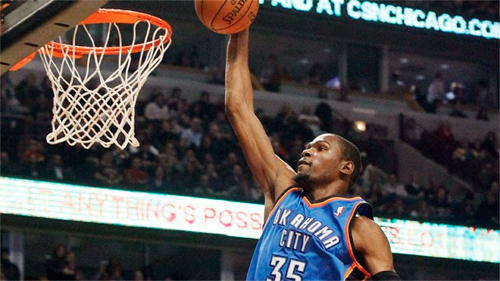 Discret pendant trois quart-temps, un peu passif, Kevin Durant s’est réveillé dans le money-time. Mené face à des Bulls solidaires et appliqués, le Thunder recolle dans le dernier quart-temps grâce à Eric Maynor. Mais Chicago s’accroche et égalise à quatre minutes de la fin de la rencontre.