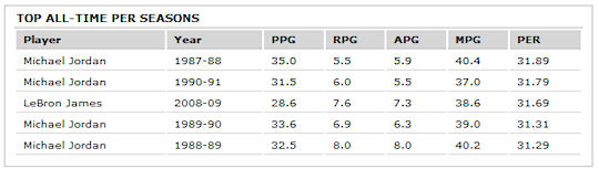 James aurait alors les stats suivantes : 32.5 pts, 8.7 rbds and 8.3 pds de moyenne.