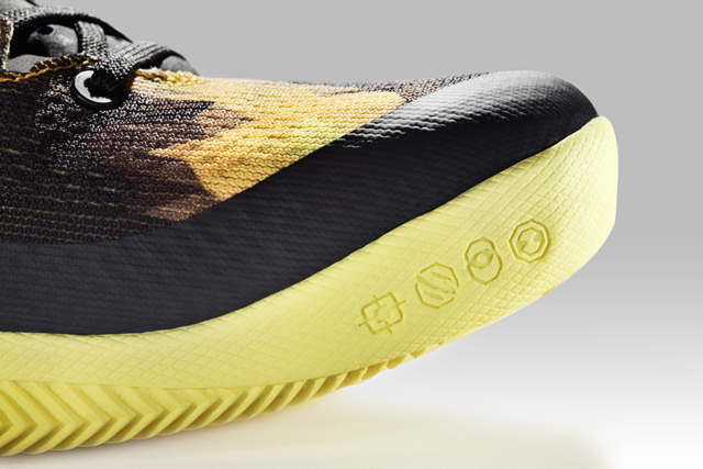 Du changement aussi au niveau de l’amorti puisque le Zoom Air est remplacé par le Lunarlon qui vient se loger sur toute la longueur de la chaussure. Cela devrait permettre d’être près du sol et d’être encore plus stable. C’est le même système qui équipe la Hyperdunk 2012. Pour ce qui est d’être près du sol, la semelle extérieure est d’ailleurs annoncée à 1 millimètre d’épaisseur.