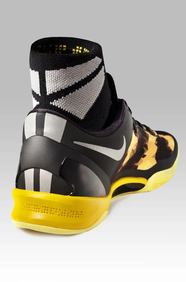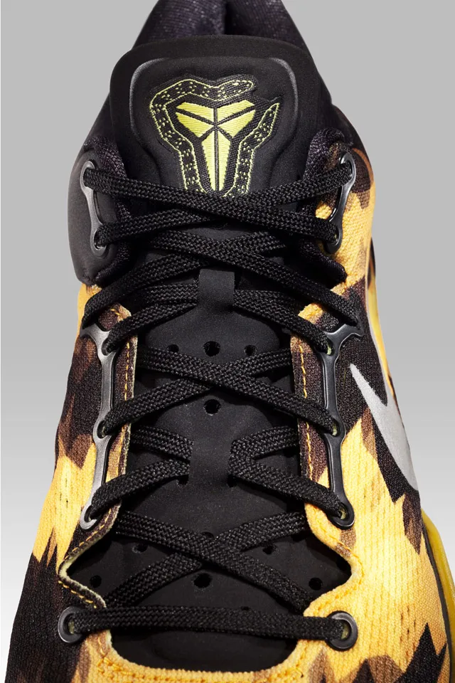 “L'Engineered Mesh de Nike crée une forme dynamique qui s'accorde autour du pied de Kobe pour imiter la biomécanique naturelle, ce qui délivre de la sécurité là ou elle est nécéssaire”, explique la marque