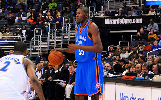 1- Kevin Durant (Thunder) : 25.7 pts, 6.5 rbds, 2.9 pds, 42.6% à 3-pts. (en 2007/08, 20.3 pts, 4.4 rbds, 2.4 pds, 28.8% à 3-pts).