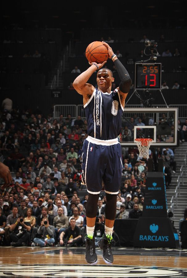 Comme prévu, Russell Westbrook a été le premier athlète Jordan Brand à porter la nouvelle Air Jordan XX8 mardi soir à Brooklyn. Ce rendu futuriste mi-chausson de plongé mi-ninja ne lui a pas mal réussi puisqu’il a inscrit 25 points et distribué 9 passes décisives.