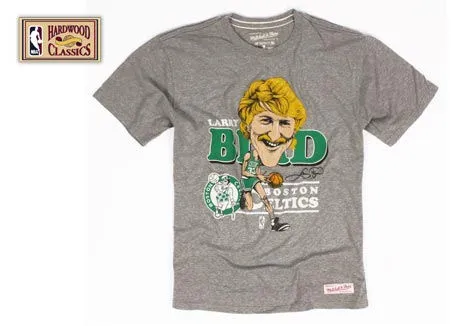 Pour les nostalgiques des années Magic-Bird-Jordan ou pour ceux qui ne jurent que par les fringues des années 80, Mitchell & Ness propose toute une collection de T-Shirts et de survêtements de cette époque. On apprécie notamment les T-shirts avec caricatures. Ca faisait fureur il y a 30 ans, et l'esprit s'est perdu aujourd'hui.