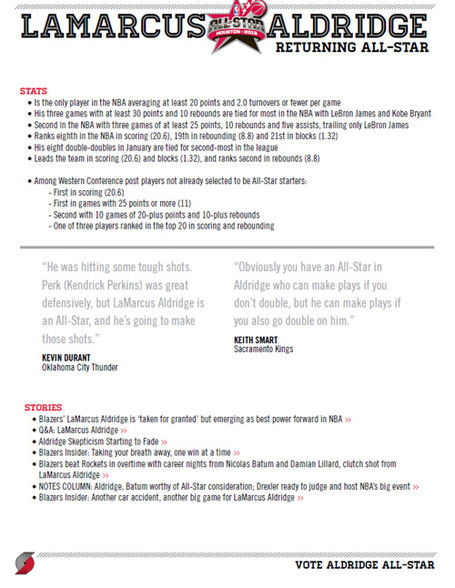 All-Star la saison passée, LaMarcus Aldridge aimerait bien réaliser le doublé, et son club a décidé d’employer les grands moyens pour convaincre les coaches de la conférence.