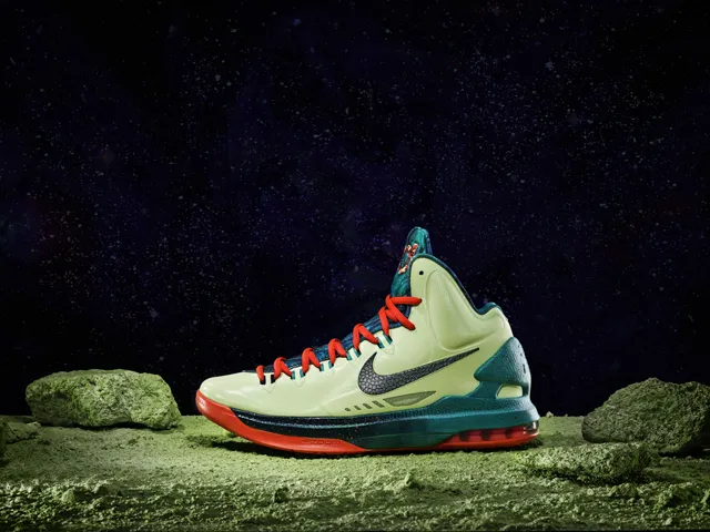 Chez Nike, il y a des gens qui sont payés pour trouver des nouveaux coloris et des histoires pour les justifier. Alors quand on leur a annoncé que le All-Star Game allait se jouer à Houston, vous vous doutez bien que leur sang n'a fait qu'un tour. Houston ? NASA, espace !