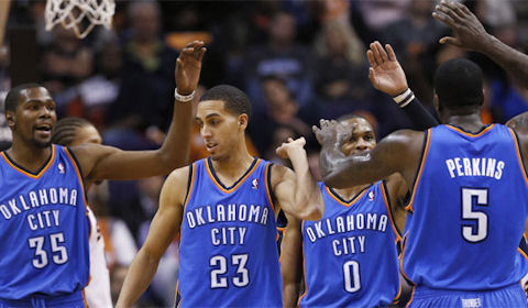 Le 3e quart temps du Thunder : 33-23. En scorant 28 pts en 8’45’ – avec 9 pts de Thabo Sefolosha et 8 de Durant – OKC a enterré sans le savoir encore les espoirs autochtones. Rentrés aux vestiaires sur un enviable 51,2% de réussite, les caïds du grand Ouest gardent la mire et enfilent les paniers comme des perles, terminant la période sur un exceptionnel 75%. Si même son chargé de défense suisse sort le colt (3/4 à trois points), preuve est faite que les gâchettes de l’Oklahoma dégainent en tout confort. Le gavage offensif donne + 16, soit le plus gros écart de la rencontre. Lob City ne s’en remettra jamais.