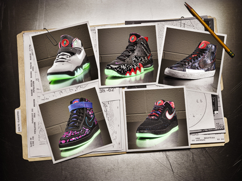 Encore une fois, Nike profite donc du passage de la NBA à Houston pour livrer une série de chaussures aux coloris inspirés de l’espace. Ici, ce sont des modèles old-school qui sont remixés avec des textures et des motifs modernes, notamment des semelles qui brillent dans le noir.