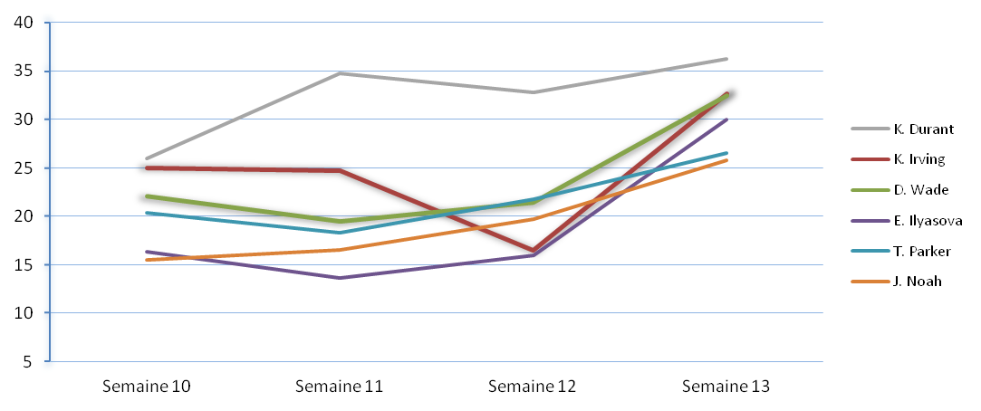 | Arrière | D. Wade | 20.7 /match | 78 | 32.5 /match |