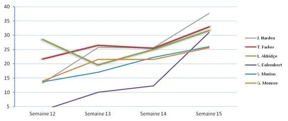 | Poste | Joueur | MJ | Total | Moy. | Record Hebdo |