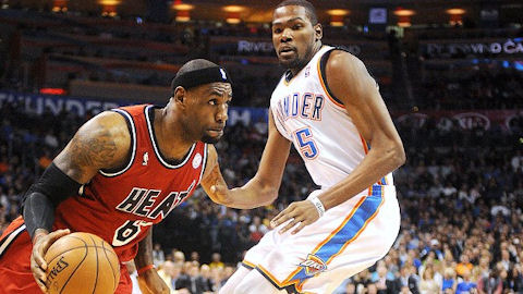 James termine avec 39 pts (14/24), 12 rebonds et 7 passes, tout simplement monstrueux. Chris Bosh confirme lui aussi sa bonne série de match avec 20 pts à 10/13, après son 13/16 contre Portland. Durant aura tout donné en dernier quart temps avec 22 pts, mais face à Miami et un joueur du niveau de James, même les finalistes NBA sont impuissants.