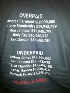 Nos confrères Canadiens, eux, n'ont pas été déçus du voyage puisqu'ils ont notamment pu admirer le t-shirt d'un spécialiste des statistiques qui avait décidé d'afficher les noms des joueurs les plus surpayés de la ligue. Sur les cinq noms, il y avait deux Raptors.
