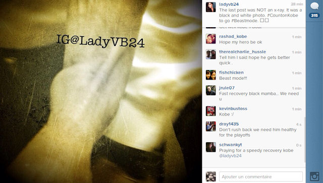 Les examens passés n’ont pas révélé de lésion, mais Kobe est out jusqu’à nouvel ordre. Son épouse a posté la photo de sa cheville, et c’est vilain…