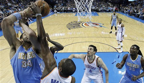 Les Nuggets avaient-ils encore les jambes lourdes après la prolongation la veille contre Chicago ? Une chose est sûre : l’impact physique en défense est toujours là, et cela empêche le Thunder de prendre le large (50-44). JaVale McGee bouge beaucoup dans la raquette, malgré quelques imprécisions et Kenneth Faried se bat énormément au rebond. Mais la défense extérieure n’est pas capable de limiter Westbrook, qui pénètre sans cesse dans l’axe du panier et réussit souvent le bon geste (66-65).