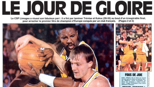 Au Final Four d’Athènes, Limoges déjoue tous les pronostics en battant le Real Madrid d’Arvydas Sabonis puis le Trévise de Toni Kukoc. Inoubliable !