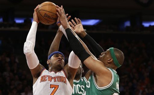 Les Knicks commencent fort avec Melo qui réussit ses 4 premiers tirs. Il rentre 10 des 12 premiers points de New York qui mène 12-6. Mais les Celtics rentrent petit à petit dans leur match, grâce notamment à l’entrée en jeu de Jeff Green. Le rescapé d’une opération du cœur est saignant et rentre même un tir à trois points au buzzer du premier quart, et Boston prend l’avantage (26-23).