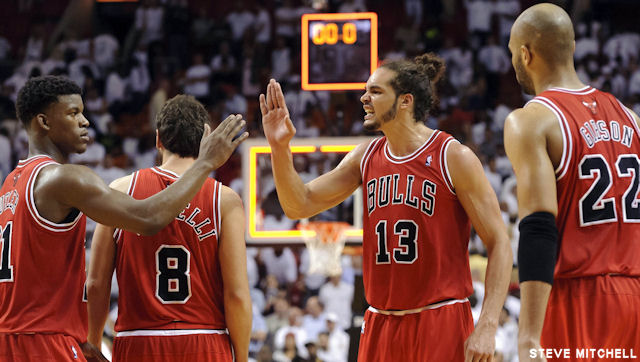 Devant un public médusé, Chicago vient s’imposer à Miami 93-86 dans une victoire surprise signée Tom Thibodeau. Le coach des Bulls a une nouvelle fois tiré le maximum de son groupe pourtant privé de Luol Deng et Kirk Hinrich. Ensuite, les consignes ont été respectées à la lettre et l’effort fut collectif. Collectif qui reste le meilleur adjectif pour qualifier cette magnifique équipe des Bulls.