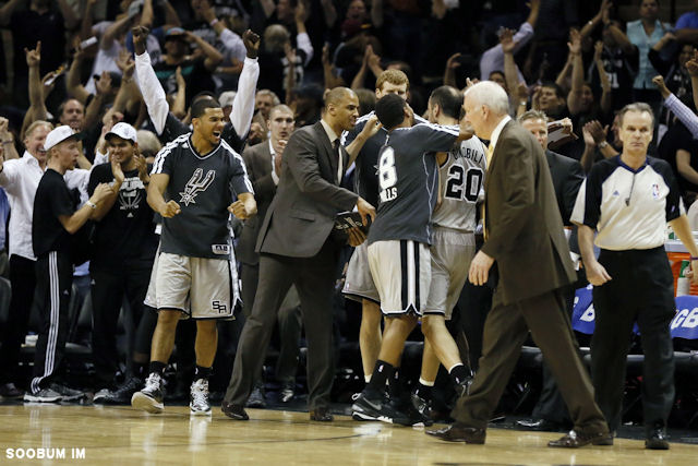 Pendant 44 minutes, le phénomène Stephen Curry (44 pts, 11 passes en 58 minutes) a bien cru enterrer la malédiction des Warriors à San Antonio : aucune victoire depuis 1997. Mais Danny Green d’abord puis Manu Ginobili à l’ultime seconde de la 2ème prolongation ont récompensé l’opiniâtreté des Spurs, qui s’en sortent à l’expérience et au mental (129-127). Tony Parker (28 pts, 8 rbds, 8 passes) a longtemps souffert avant d’éviter une fâcheuse défaite à ses troupes.