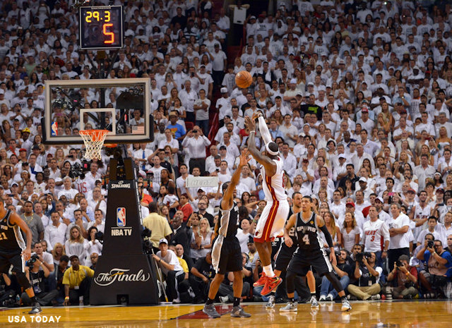 Puis, ensuite, la star du Heat est monté en puissance, avec une adresse à 3-points qu’on ne lui connaissait pas dans cette finale, un impact physique réellement impressionnant, et ce shoot à 5 mètres qui enterre les derniers espoirs des Spurs à 27 secondes de la fin.