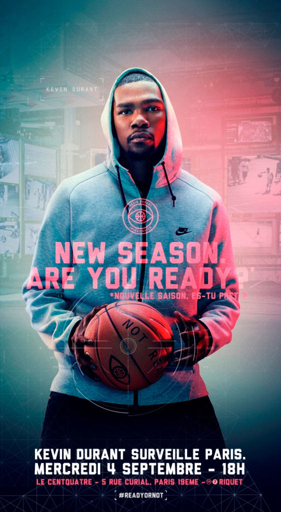 En tournée européenne pour présenter la KD VI, Durant sera aussi là pour juger divers concours (adresse, dextérité…). Pour y participer, c’est simple, il suffit de poster une photo sur Facebook, Twitter ou Instagram avec le hashtag #READYORNOT. Après une première sélection selon les clichés, les meilleurs retenus participerontau challenge sous les yeux de Durant !
