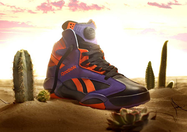 La chaussure retrouve le système Pump et l’amorti Hexalite de la version originale, le tout habillé aux couleurs des Suns, avec même un petit cactus sur le talon.