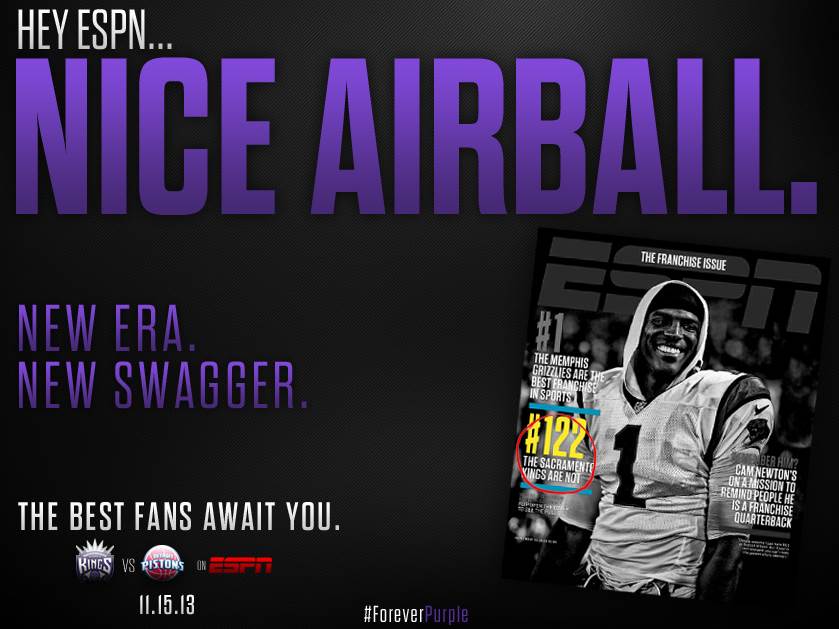 Récemment élue pire franchise du sport US par ESPN Magazine, l’équipe de Sacramento a décidé de ne pas se laisser faire. Au travers d’une campagne lancée sur leur site web officiel, les Kings répondent aux journalistes américains en les affublant d’un “joli airball”.
