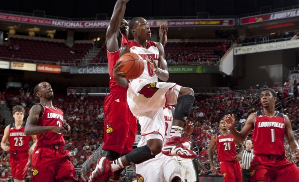 Après Pittsburgh la semaine passée et Kansas et Indiana vendredi soir, l’équipe de Louisville a elle aussi lancé sa saison avec un premier entrainement en public. Mais contrairement aux traditionnelles « Midnight Madness » qui sont aujourd’hui devenues plus un show familial qu’autre chose, Rick Pitino a voulu que ses joueurs se mettent au travail d’entrée de jeu. Pas de chichi donc pour les Cardinals mais uniquement un vrai match de quarante minutes entre les joueurs du champion en titre.