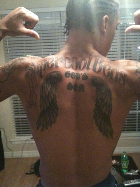 Comme d’autres, Michael Beasley s’est mis sur Twitter (et son équivalent photo Twitpic) pour raconter sa vie, et donner des nouvelles à ses fans. En fin de semaine, il a “tweeté” une photo de lui (voir ci-dessous en grand), montrant son nouveau tatouage sur les épaules.