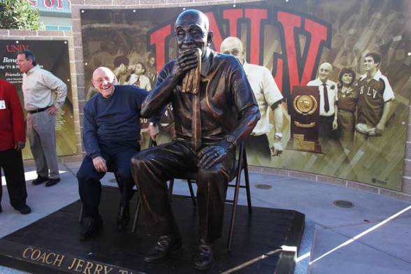Fraîchement élu au sein du Hall of Fame, Jerry Tarkanian a désormais une statue à son effigie sur le campus de UNLV où il a passé dix-neuf saisons sur le banc de l’équipe de basket. “Tark the Shark” a remporté 509 matchs avec les Runnin’ Rebels et a conduit son équipe au titre de champion NCAA en 1990 et à un total de quatre Final Four.