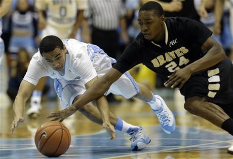 North Carolina a facilement battu l’équipe d’UNC Pembroke en match exhibition, sur le score de 83 à 62. Les Tar Heels ont pu compter sur un bel apport de James Michael McAdoo, auteur de 19 points et 10 rebonds, et de 11 points du freshman Kennedy Meeks. Roy Williams a été contraint de laisser P.J. Hairston, Leslie McDonald et J.P. Tokoto sur le banc en raison de diverses suspensions. Après avoir eu vingt-quatre points d’avance à la pause, North Carolina s’est contenté de gérer la deuxième mi-temps en faisant tourner son effectif.