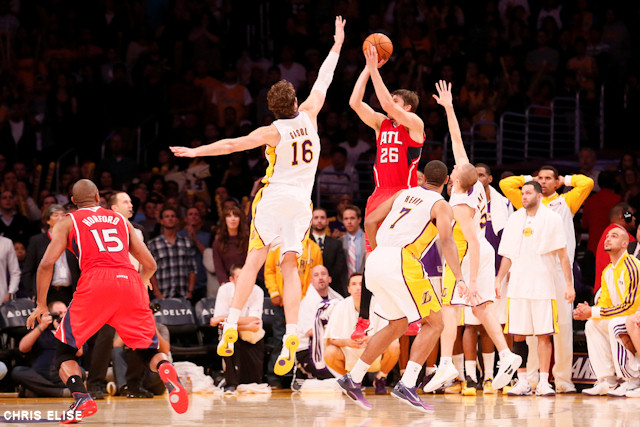 Paul Millsap n’a pas la meilleure idée de la soirée en envoyant le co-capitaine angeleno sur la ligne des lancers. Il y est à l’aise, surtout quand il faut clore une affaire qui traîne depuis trop longtemps. Kyle Korver, quasi parfait jusque-là (6/6 à trois points et 8/10 aux shoots) l’apprend à son insu, quand Gasol caresse son shoot de ses grandes paluches (voir photo). Une mauvaise passe d’Al Horford pour l’opportuniste Jodie Meeks soulage définitivement Pau et sa bande, pourtant incapables de marquer plus de quatre paniers sur les douze dernières minutes.