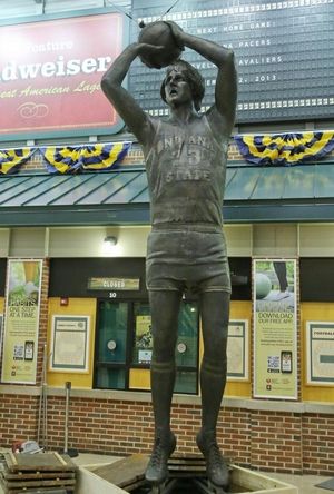 Le statue de Larry Bird attendue depuis des mois à Indiana State est enfin en place. Mardi, une grue est venue installer l’œuvre en bronze de 860 kilos. Heureux hasard, le grutier avait d’ailleurs des billets à l’année pour les matches de la fac’ lors de la dernière année de Bird.