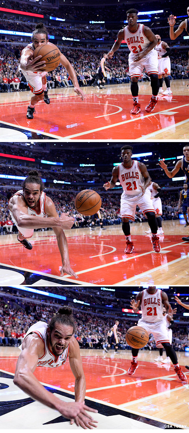 En fouillant ce matin dans la banque d’images de USA Today avec qui Basket USA est sous contrat, on a découvert trois photos qui symbolisent vraiment le jeu de Joakim Noah.