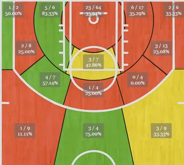 En attendant que Dwane Casey freine ses deux “pistoleros”, on vous laisse apprécier leur (mal)adresse aux tirs selon les différents emplacements sur terrain.