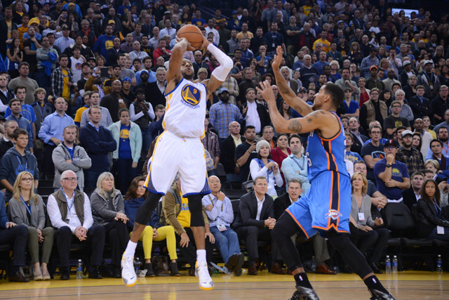 Le Thunder est battu, comme la veille face aux Clippers. Bouffé au rebond (26/48, dont 13 prises offensives pour OKC), Golden State fait parler son adresse (14/23 à 7m25) et sa maîtrise collective (7 balles perdues, 26 assists) pour éviter une première défaite dans son antre.