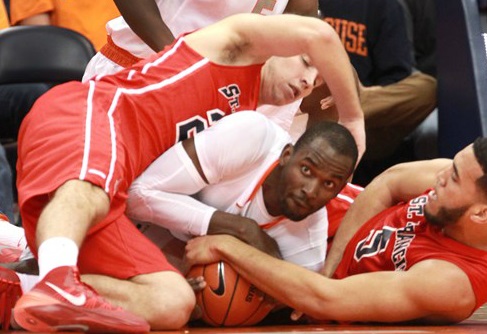 Si le bilan comptable est pour l’instant irréprochable avec quatre victoires en autant de matchs disputés et une neuvième place au ranking de l’Associated Press, c’est un euphémisme que de dire que le début de saison de l’équipe de Syracuse est inquiétant. Les Orange n’ont pour l’instant affronté aucune équipe de renom et n’ont encore jamais quitté leur antre du Carrier Dome, mais cela ne les a pas empêché d’être malmenés par deux fois cette saison.