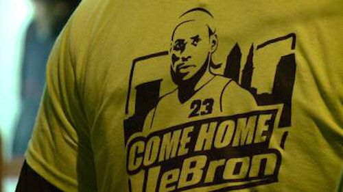 Présent devant la Quicken Loans Arena pour distribuer les T-Shirts, James Blair (ce fan de Cleveland banni à vie pour avoir débarqué sur le terrain en plein match, en mars dernier, avec un T-Shirt « We miss you LeBron ») explique que le but de l’opération n’est pas de supplier LeBron mais du lui montrer qu’il sera accueilli à bras ouverts s’il choisit de revenir.