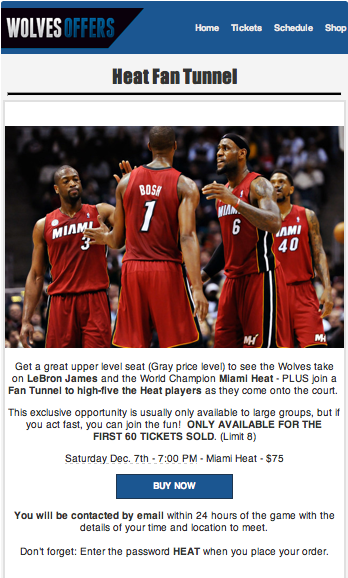 Du coup, pour la venue du double champion à Minnesota le 7 décembre prochain, la franchise des Wolves a décidé de lancer une offre promotionnelle qui permettra aux 60 premiers fans qui achèteront leur billet de pouvoir accéder au tunnel d’entrée des joueurs et donc claquer une poignée de mains à LeBron, Dwyane & consorts.