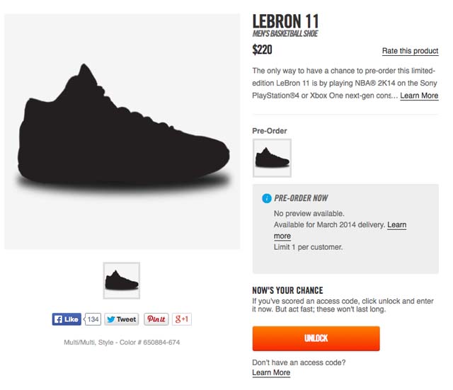 Le principe : une fois votre compte 2K Sports activé, il faut créer un joueur, finir au moins 60 matches de saison, recevoir le rang de “Elite player”, être un des premiers à créer une chaussure signature et devenir une superstar Nike dans le jeu. Une fois ces étapes complétées, les joueurs reçoivent un email contenant un code qui leur permettra de commander un des 2014 LeBron XI spécialement crées pour les joueurs de 2K14 sur le Nike Store.
