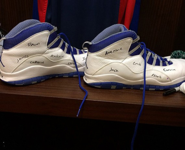 Dimanche, l’Amérique a fêté le triste anniversaire de la tuerie de l’école de Sandy Hook à Newtown. De nombreux joueurs ont tenté de rendre hommage aux enfants tués. Andre Drummond l’a fait en inscrivant les prénoms des victimes sur ses chaussures de match, une paire de Air Jordan X “Old Royal.”