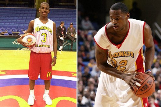 Considéré comme le All-Star game des lycéens, le McDonald’s All American Game a vu défiler les plus grandes stars NBA… En 2003, à la Gund Arena de Cleveland, il y a du très lourd sur le parquet avec le héros local, LeBron James, coéquipier de Chris Paul, mais aussi Luol Deng, Brandon Bass, Kris Humphries, Travis Outlaw, Aaron Brooks ou Shannon Brown et Kendrick Perkins.
