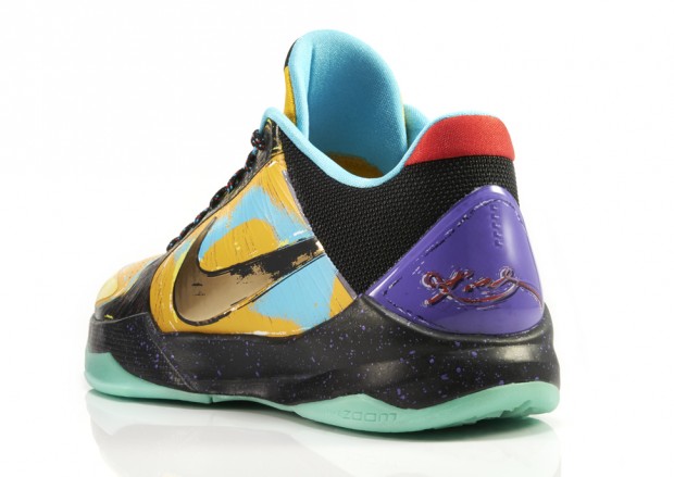En janvier, Nike va profiter du lancement de la Kobe 9 pour ressortir tous les modèles précédents dans une version “Prelude”. Voici donc la Kobe V qui confirmait à l’époque le choix d’une tige basse, apparu avec la Kobe IV. Le tout avec quelques grammes en moins, et une virgule en or pour signifier le titre remporté en 2009 face au Magic.