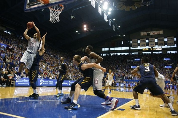 Kansas a consolidé sa place de leader de la Big 12 samedi en dominant l’équipe de West Virginia par 81 à 69 avec une excellente performance d’Andrew Wiggins. Les Jayahawks ont livré un match sérieux face à un adversaire de très bon niveau mais trop court sur la fin de partie. Les Mountaineers, installés dans le milieu de tableau de la conférence, ont longtemps fait la course en tête en première période avant de craquer juste avant la pause. Au retour des vestiaires, Wiggins et Wayne Selden ont passé la vitesse supérieure et ont donné de l’air à leur équipe, qui n’a pas vraiment eu à trembler dans le “money time”.