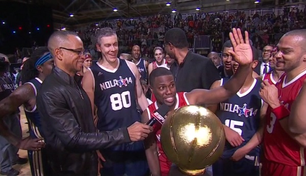 Mais cela n’a pas suffi pour que les fans lui offrent le titre de meilleur joueur du match. C’est en effet le comédien Kevin Hart, déjà double MVP en titre, qui a reçu le plus de suffrages de la part du public, bien qu’ayant réalisé une performance indigente (7 points, 4 passes décisives et la défaite) sur le terrain. Ce dernier a tout de même eu la décence de donner son trophée à Duncan, qui a mis tout le monde d’accord sur le parquet.