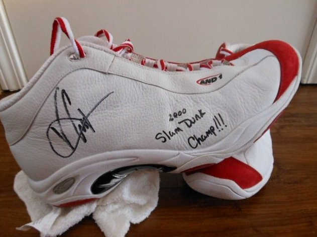 Pour ce prix, vous pouvez donc mettre la main sur la And 1 Tai Chi pointure 51 que portait Vinsanity pour remporter le concours. La chaussure droite est dédicacée par l’ancien Raptor.