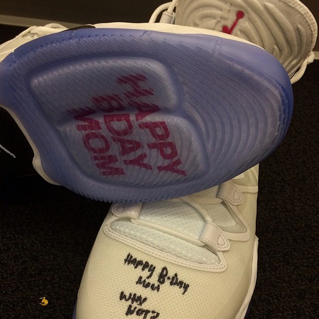 Écrire au feutre sur ses chaussures pour faire passer un message, ce n’est plus une grande nouveauté. Mais Jordan Brand et Russell Westbrook sont allés un peu plus loin jeudi soir pour souhaiter un joyeux anniversaire à la maman du meneur d’OKC.