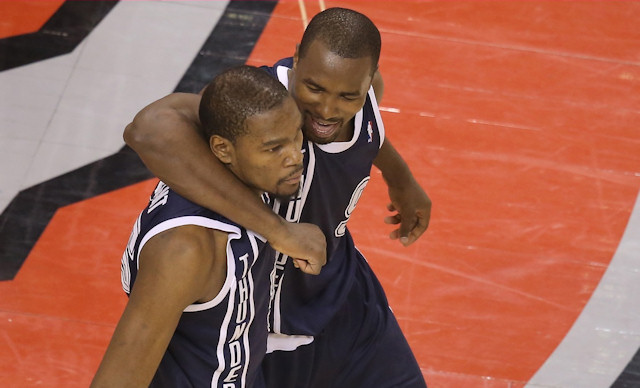 Du coup, Durant a pris les choses en main en marquant 7 des 12 points d’OKC dans l’ultime prolongation alors que son Thunder a compté jusqu’à 8 points de retard à 49 secondes de la fin. En fait, c’est Derek Fisher qui a rentré le shoot primé qui a relancé la donne. Assomés, les Raptors n’ont pu que subir le dernier assaut de Durant. Défendu par Johnson, Durant s’est servi de l’intérieur des Raptors comme viseur pour son dernier tir victorieux. OKC s’en sort miraculeusement (119-118) avec une performance de MVP incontestable de Kevin Durant (51 points, 12 rebonds, 7 passes).