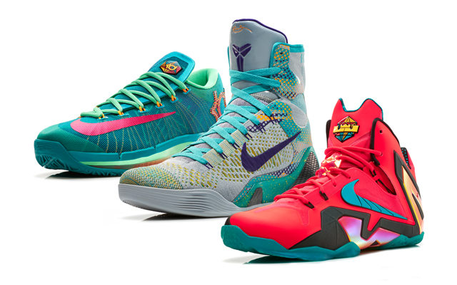Pour la star du Heat, le coloris est baptisé “Laser Crimson.” Durant jouera en “Turbo Green”, tandis que Bryant, recevra une chaussure inspirée notamment par le Pop Art qu’il devra se contenter de porter en rééducation.