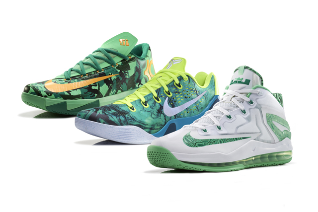Cette collection “Easter” n’est composée que de chaussures à tige basse puisque la Kobe 9 EM et la KD VI sont accompagnées par la version basse de la LeBron 11. Comme les années précédentes, le vert à l’honneur.
