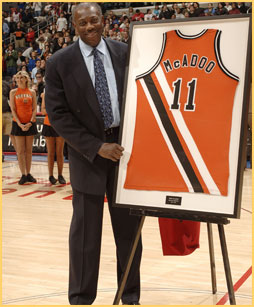 MVP en 1975 (34.5 points, 14.1 rebonds par match), triple meilleur marqueur de la ligue, McAdoo a porté les maillots les plus mythiques de la ligue : New York, Boston, Los Angeles. Mais c’est bien avec les Lakers qu’il va connaître ses plus belles années collectives en étant champion en 1982 et 1985, comme sixième homme de luxe.
