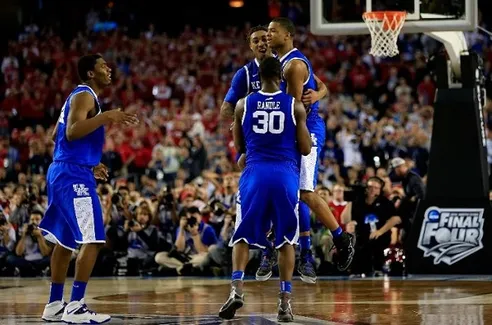 Ils l'ont fait ! Les freshmen de Kentucky, premier cinq majeur entièrement constitué de joueurs de première année depuis le fameux Fab 5 de Michigan en 1992, se sont qualifiés pour la finale du championnat universitaire en dominant Wisconsin (74-73) sur un nouveau panier décisif d'Aaron Harrison, déjà auteur du tir victorieux aux tours précédents face à Louisville et Michigan. Le match a été très disputé et le niveau de jeu a été d'une grande qualité pendant l'intégralité des quarante minutes de la partie.